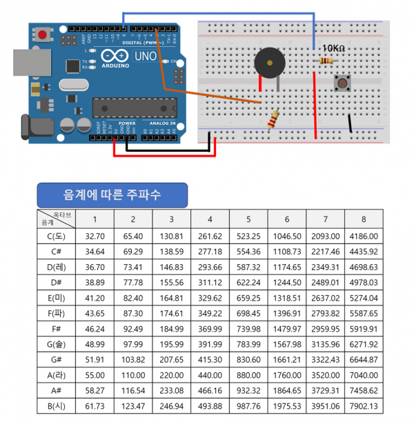 ■ tone(핀번호, 주파수) 또는 tone(핀번호, 주파수, 출력시간)
