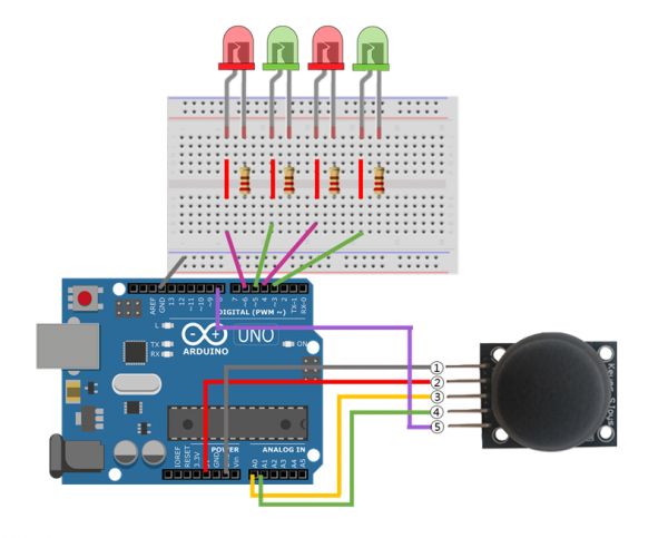 ◆ 왼쪽 LED부터 6, 5, 4, 3번핀에 순차적으로 연결시켜 주고, GND끼리 연결시켜 준다.