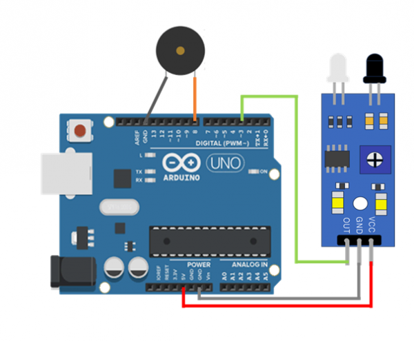 ----- < 적외선 송수신 센서 모듈 장애물을 감지 시 부저 울림 소스 코드 > -----------------------------------------