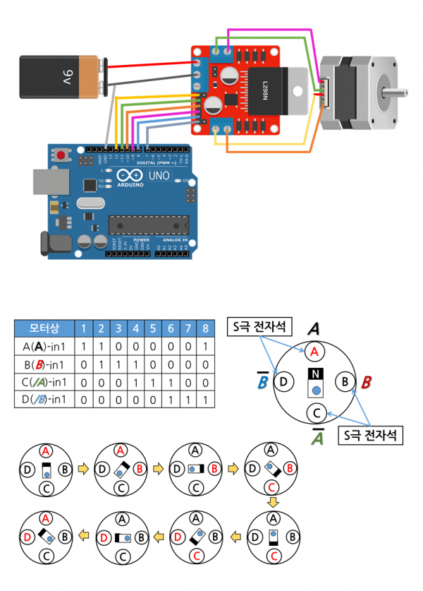 동영상 : https://youtu.be/7SwuODUA2JU <* 스테핑 모터(Stepping Motor) L298N 드라이버 사용 *>