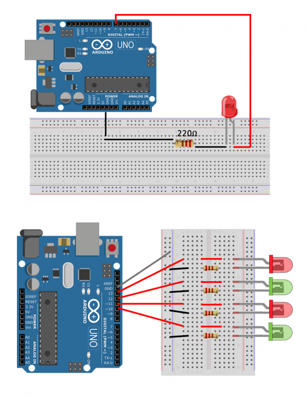 아두이노 LED 동작 작성자 임베디드코리아 작성일23-01-30 15:04 조회2,141회 댓글0건 첨부파일 LED.ino (184byte) 10회 다운로드 DATE : 2025-05-15 16:04:20 이전글 다음글 목록 동영상 : https://youtu.be/ldQG9p2lh38 < LED 1개 깜박이기 > --------------------------------------------- int led1pin=7; void setup() { pinMode(led1pin, OUTPUT); } void loop() { digitalWrite(led1pin, HIGH); delay(500); digitalWrite(led1pin,LOW); delay(500); } ---------------------------------------------------- < LED 4개 동작 > ------------------------------------------------------- void setup() { pinMode(13, OUTPUT); pinMode(12, OUTPUT); pinMode(11, OUTPUT); pinMode(10, OUTPUT); } void loop() { digitalWrite(13, HIGH); delay(1000); digitalWrite(13, LOW); digitalWrite(12, HIGH); delay(1000); digitalWrite(12, LOW); digitalWrite(11, HIGH); delay(1000); digitalWrite(11, LOW); digitalWrite(10, HIGH); delay(1000); digitalWrite(10, LOW); delay(1000); } 이전글 다음글 목록